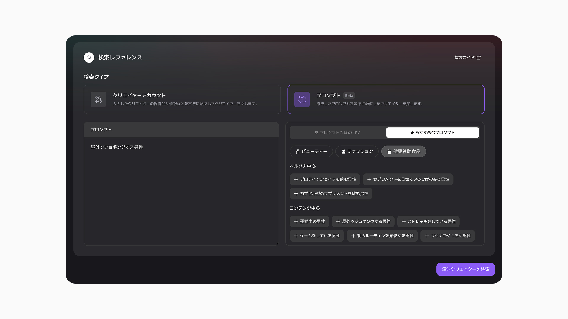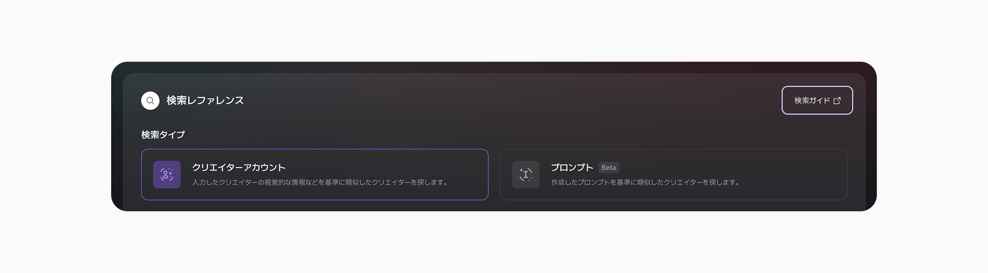 これからは、「クリエイターアカウント」または「プロンプト」のいずれかの検索タイプを選択して検索できます。