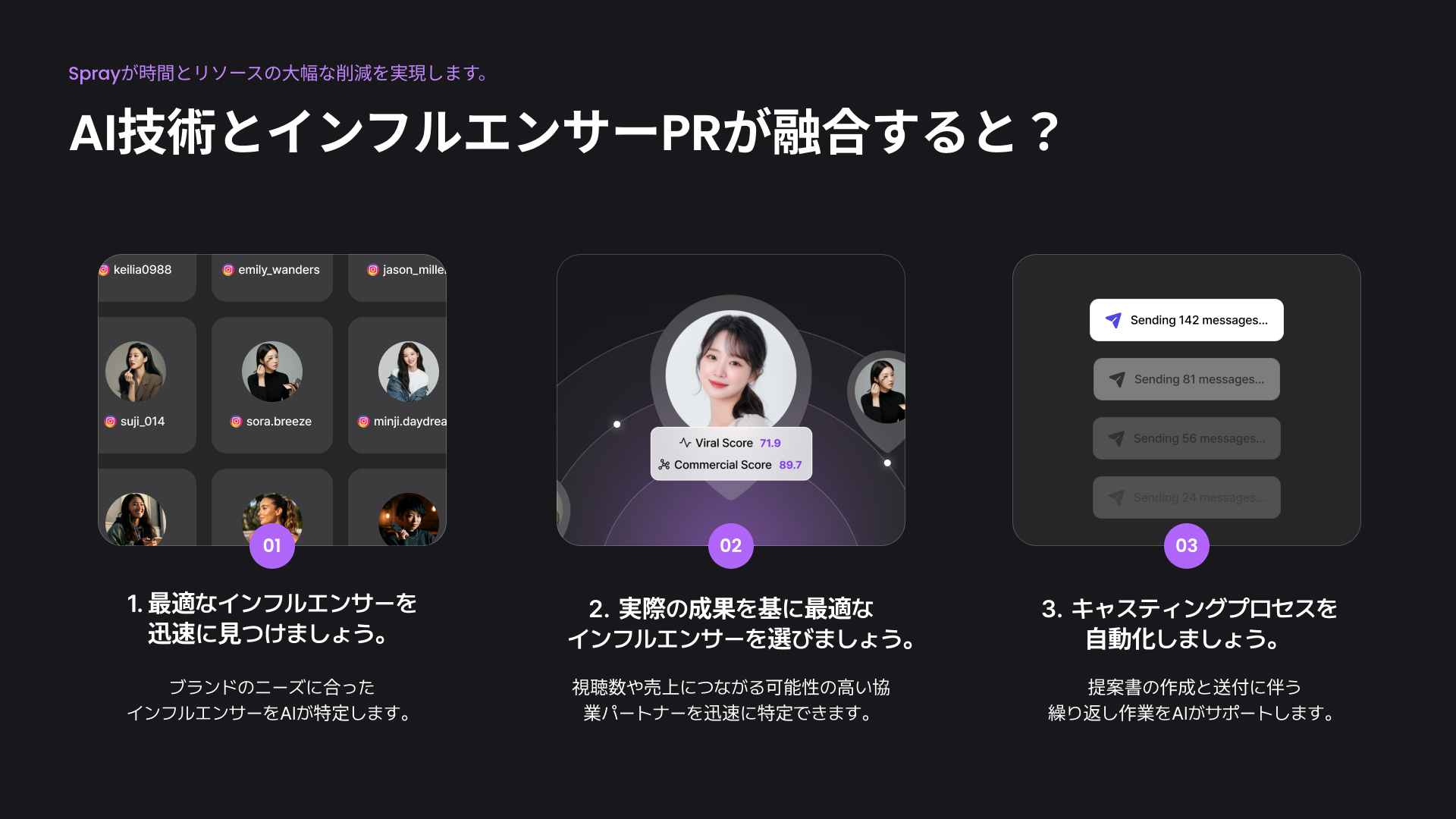 リソースの問題でシードを本格化できなかったブランドも、Sprayを利用することで、短期間で質の高いキャンペーンを運営できるようになります。