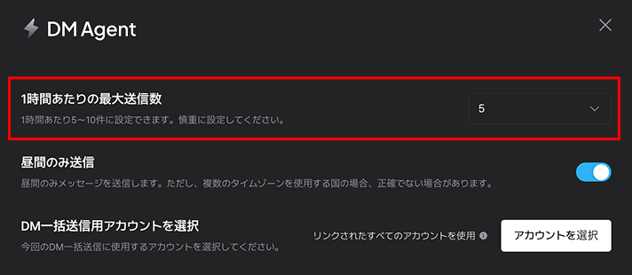 DM Agent使用時、アカウント制限のリスクが高くなる場合があります