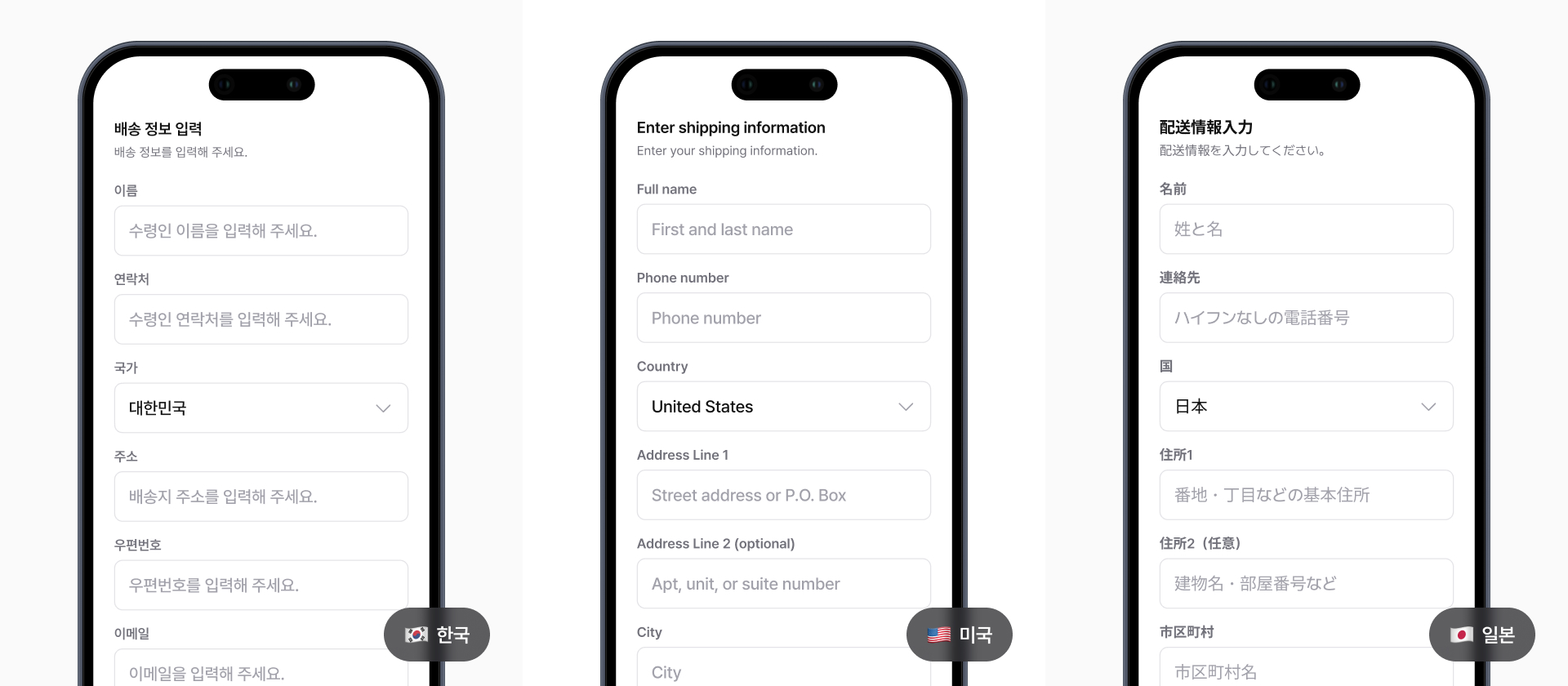 모든 국가의 주소 체계를 지원하는 입력 필드로 확장
