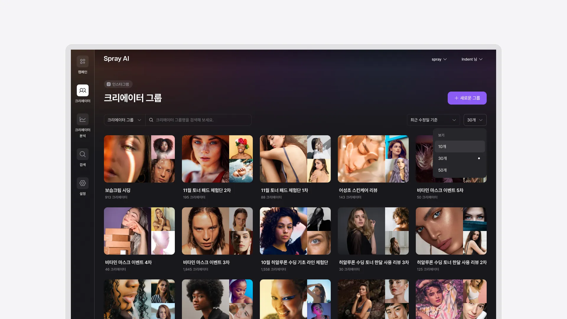 크리에이터 리스트를 그룹으로 관리할 수 있습니다.