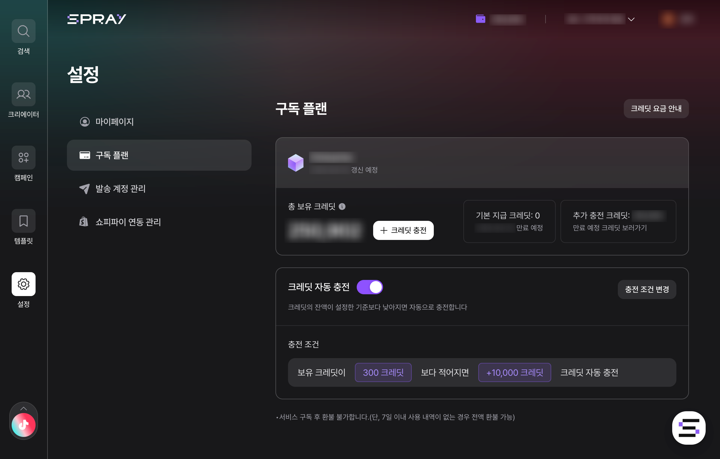 자동 크레딧 충전을 활성화할 수 있습니다.